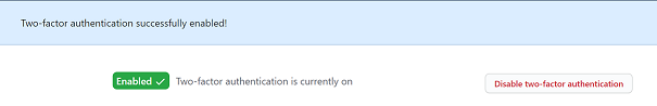 こちらの画面が表示されるとTwo-facor suthenticationの設定は完了です。